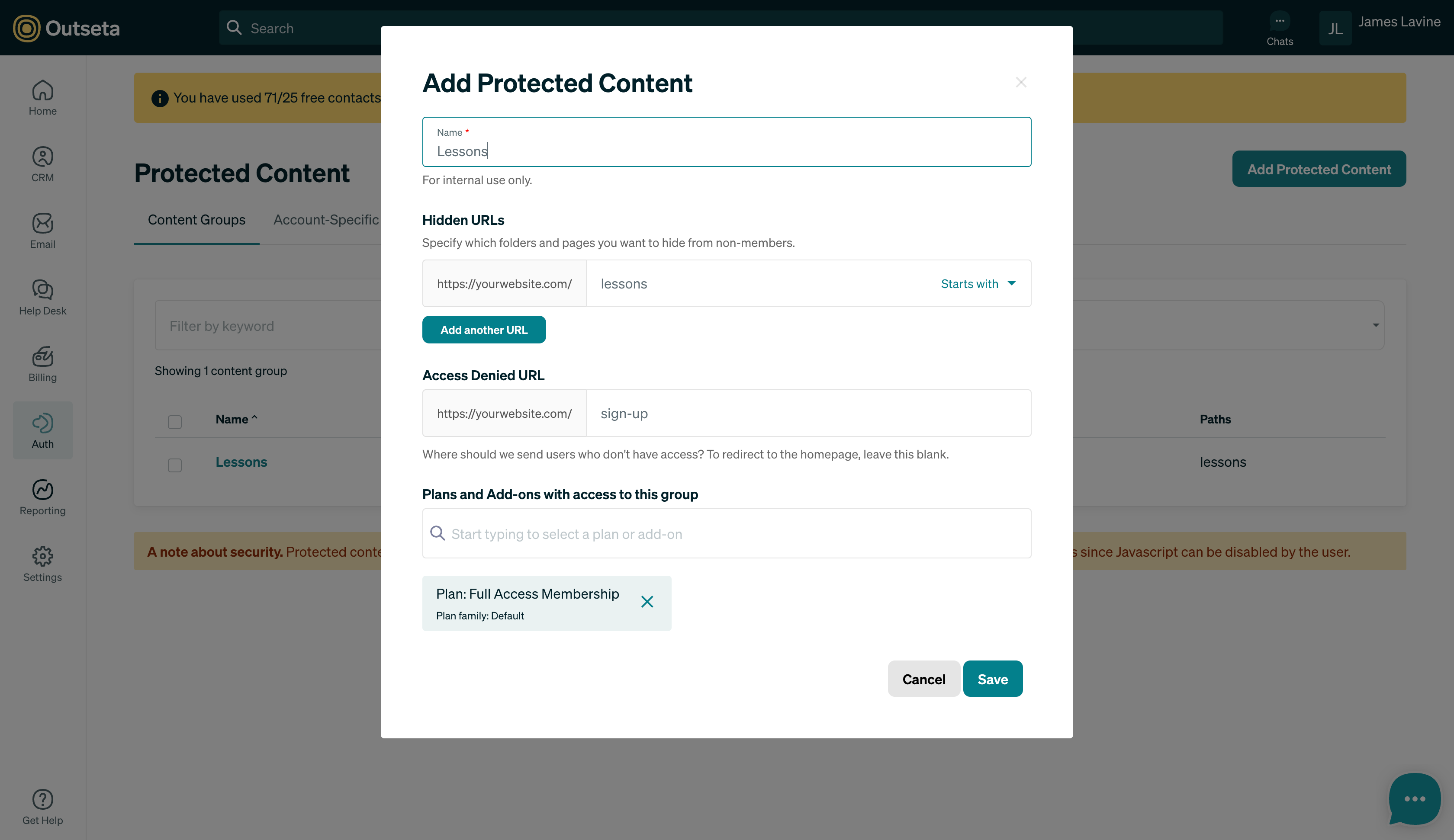 This is pretty straightforward, but you'll choose which plans can access the protected content. In this example we only have one plan, and that plan gives users access to all of the courses on the site. But you could also set it up in a way that gives users access to specific courses based on their plan or plan add-ons.